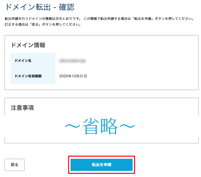 | 転出 | 例)さくらインターネット→Aドメイン事業者 |