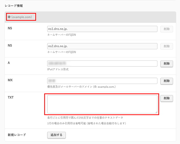 例:_validation-contactemail.example.com. 3600 IN TXT "お客様メールアドレス"
