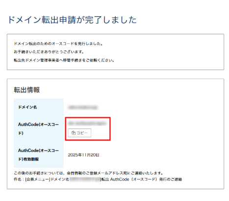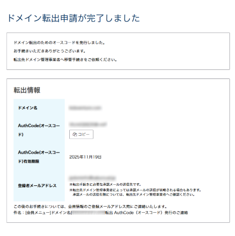 - ドメイン転出時、メールだとオースコードが分かりにくい